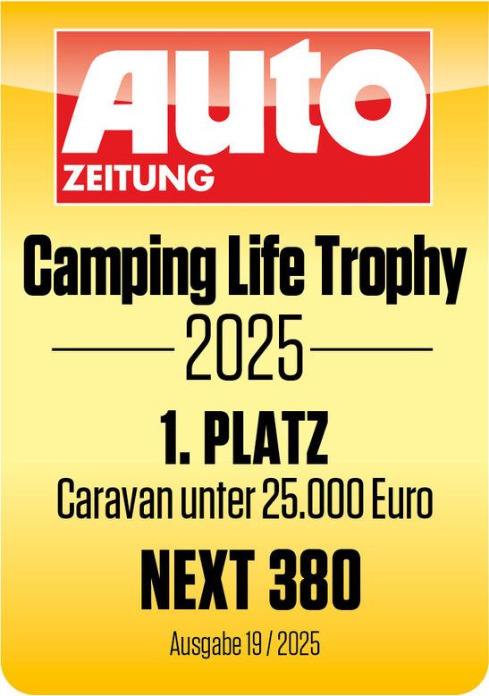 NEXT overtuigt met een helder concept dat lichtheid, functionaliteit en design combineert. Daarvoor krijgen onze caravans brede erkenning – zowel van experts als van de kampeergemeenschap.